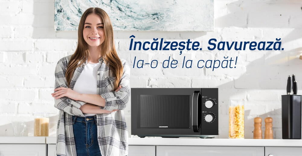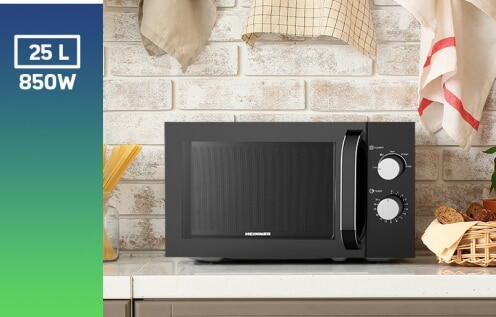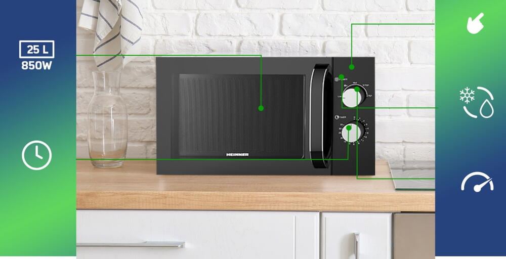 Cuptor cu microunde Heinner HMW-M2535BK, 25 l, 850 W, Control mecanic, Timer, Negru