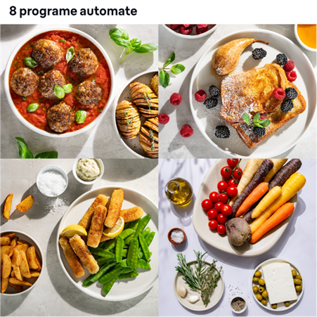 ![]() | Ecran tactil cu 8 programe automate: Cartofi congelati, Cartofi proaspeti, Carne, Pui, Peste, Legume, Prajituri sau Reincalzire. Toate aceste programe sunt la indemana ta. Mai mult, ecranul tactil elimina orice incertitudine cand vine vorba de gatit, setand automat timpul optim si temperatura ideala pentru rezultate excelente. |