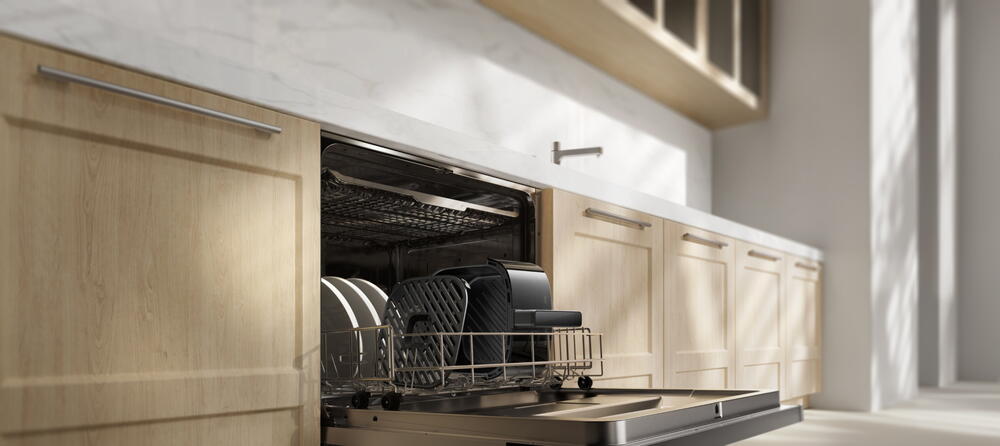 Designul său elegant și compact se potrivește perfect în orice bucătărie. Dimensiunile aparatului sunt de 390 x 276 x 335 mm, ceea ce îl face ușor de integrat pe blatul de lucru. Interiorul este metalic și placat cu un strat antiaderent, ceea ce facilitează curățarea după utilizare. În plus, fereastra transparentă cu iluminare LED permite monitorizarea procesului de gătire fără a deschide aparatul, păstrând temperatura constantă.